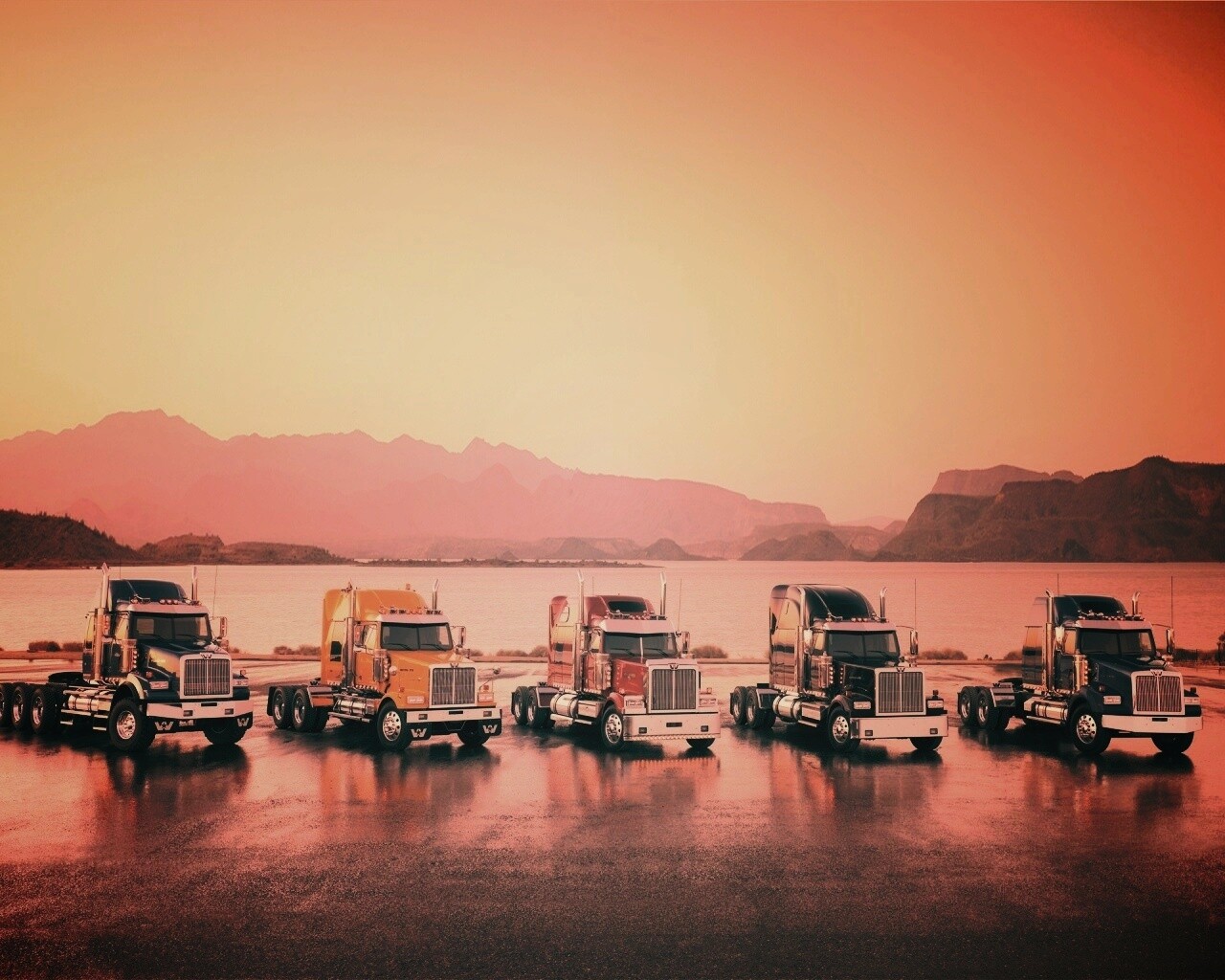 «Тягачи на фоне озера»