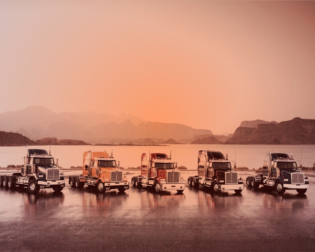 «Тягачи на фоне озера»