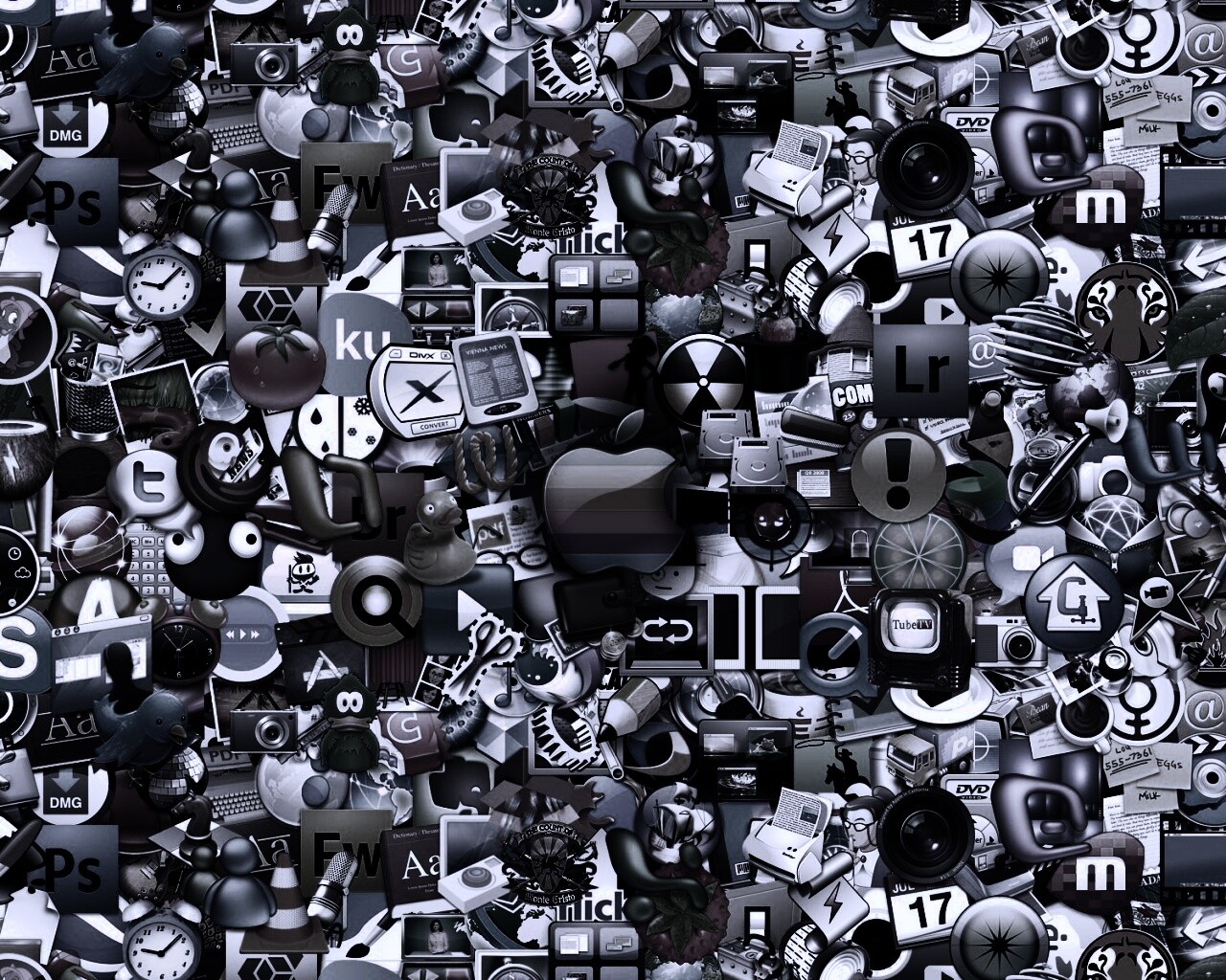 Обои для рабочего стола «Иконки приложений для устройств Apple» 1280х1024 с фильтром gotham (оригинал 1920х1200)