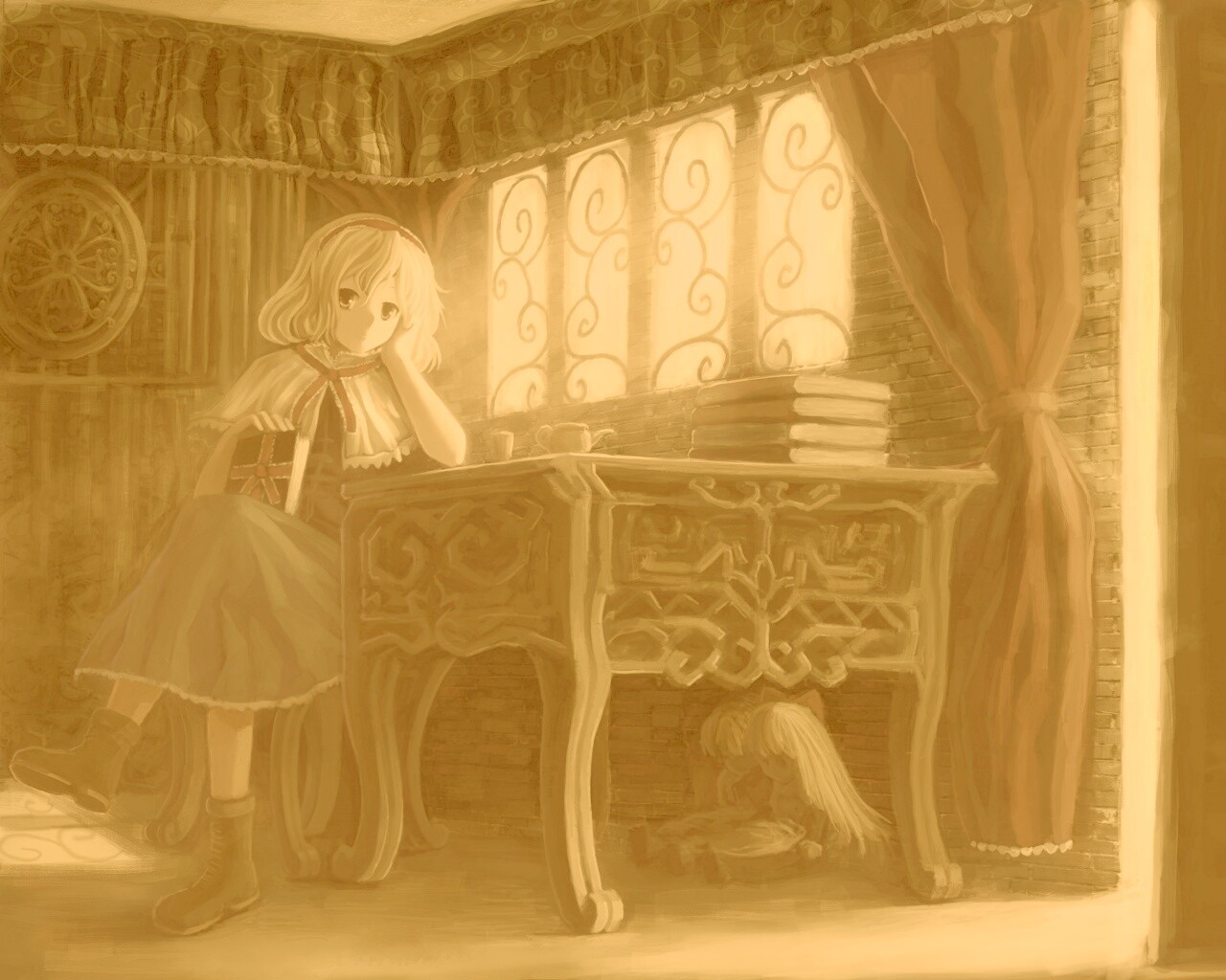«Девочка за столом с книгами»