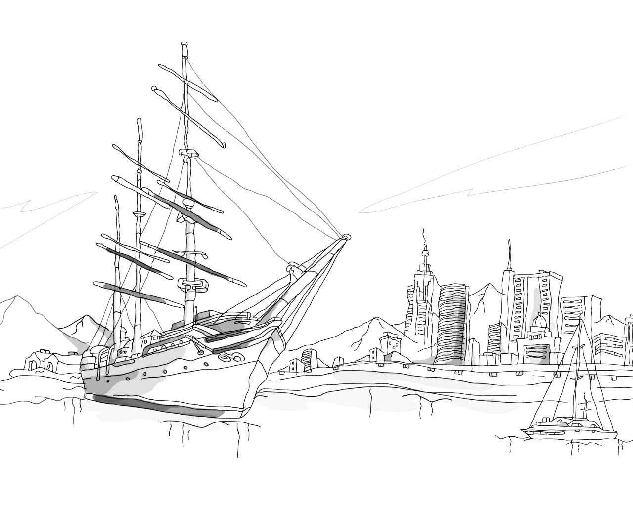 «Парусник у города»
