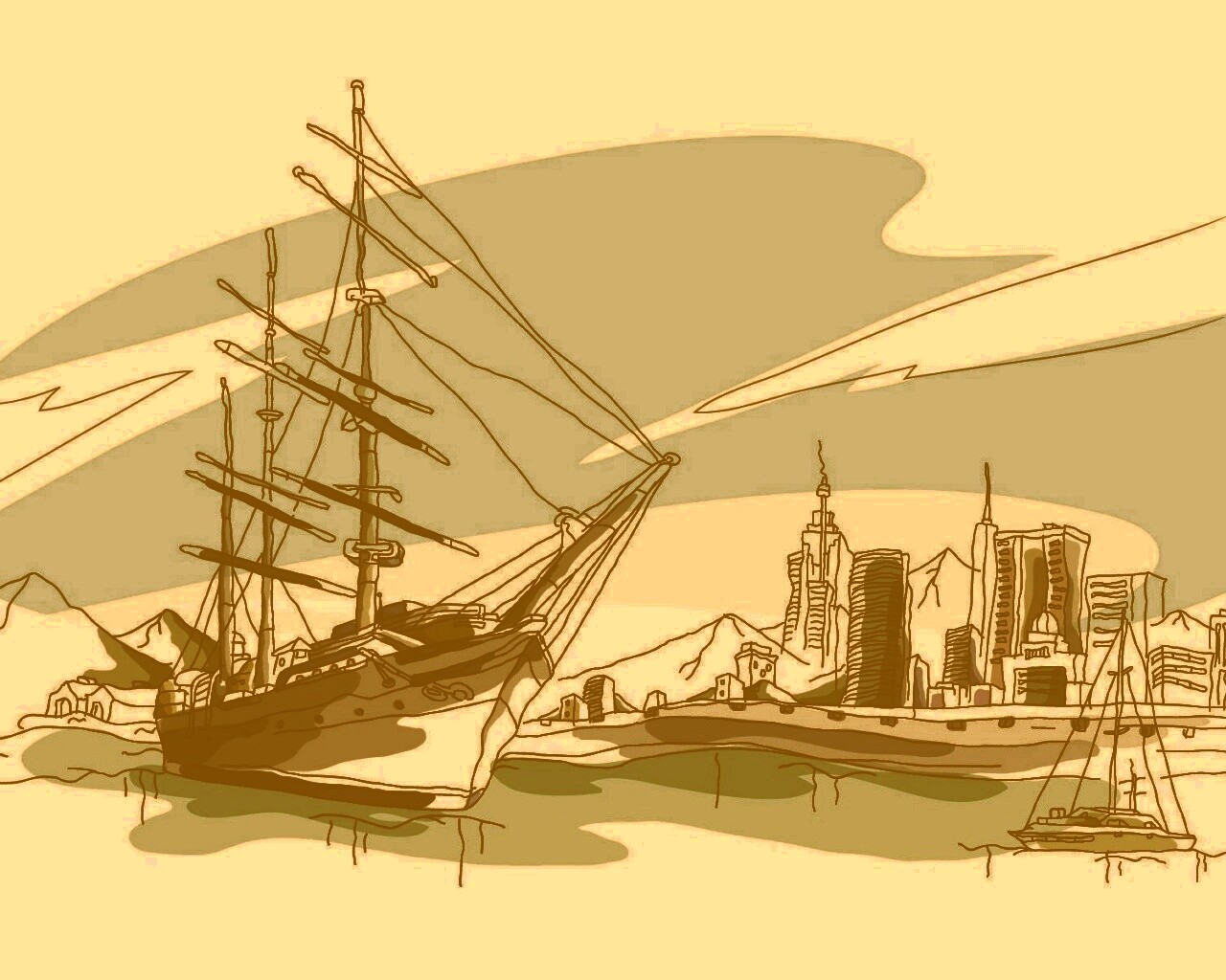 «Парусник у города»