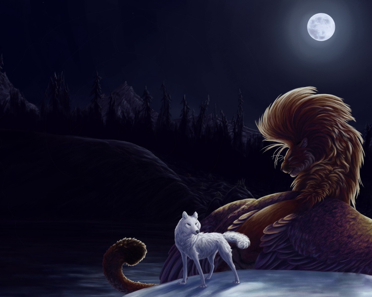 «Волк и лев при луне»