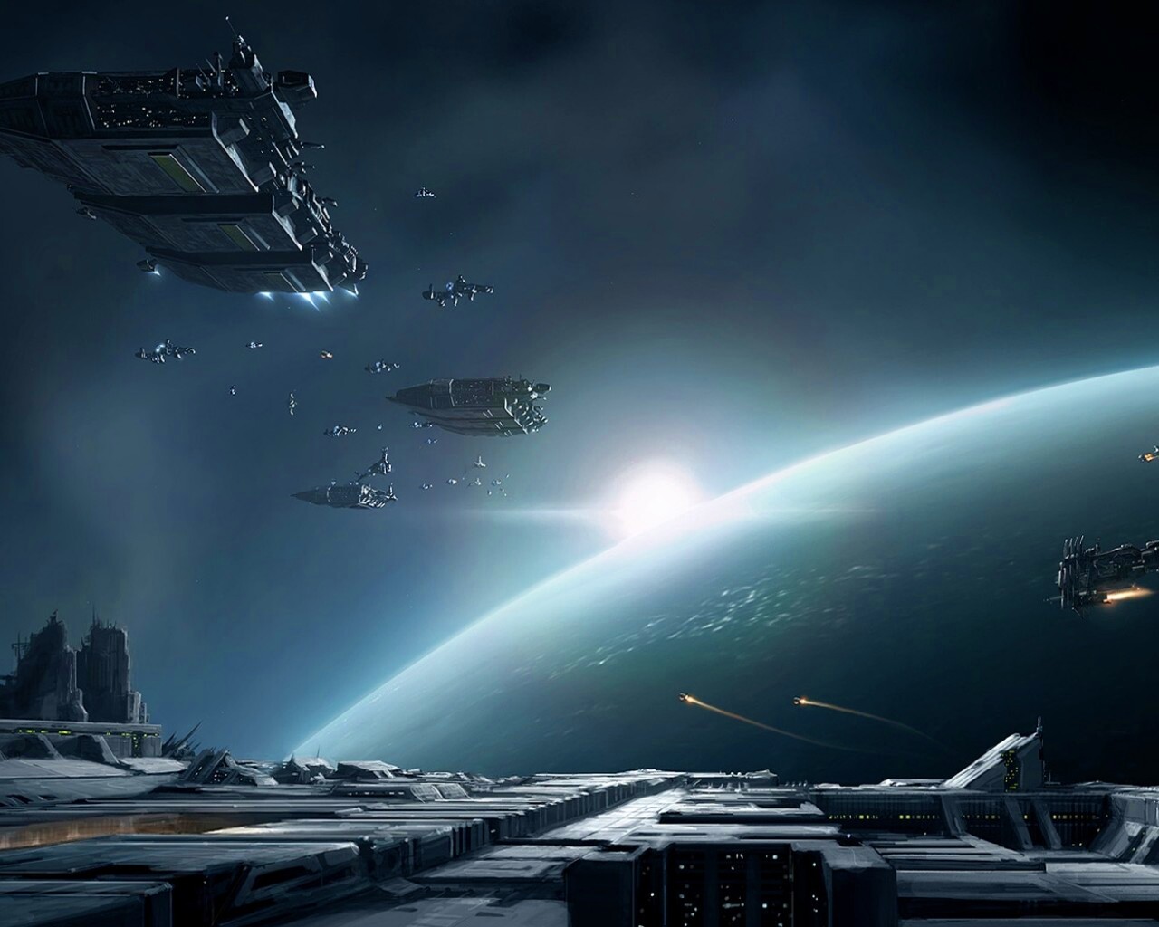 Обои для рабочего стола «Космический флот» 1280х1024 с фильтром vibrance (оригинал 1680х1050)