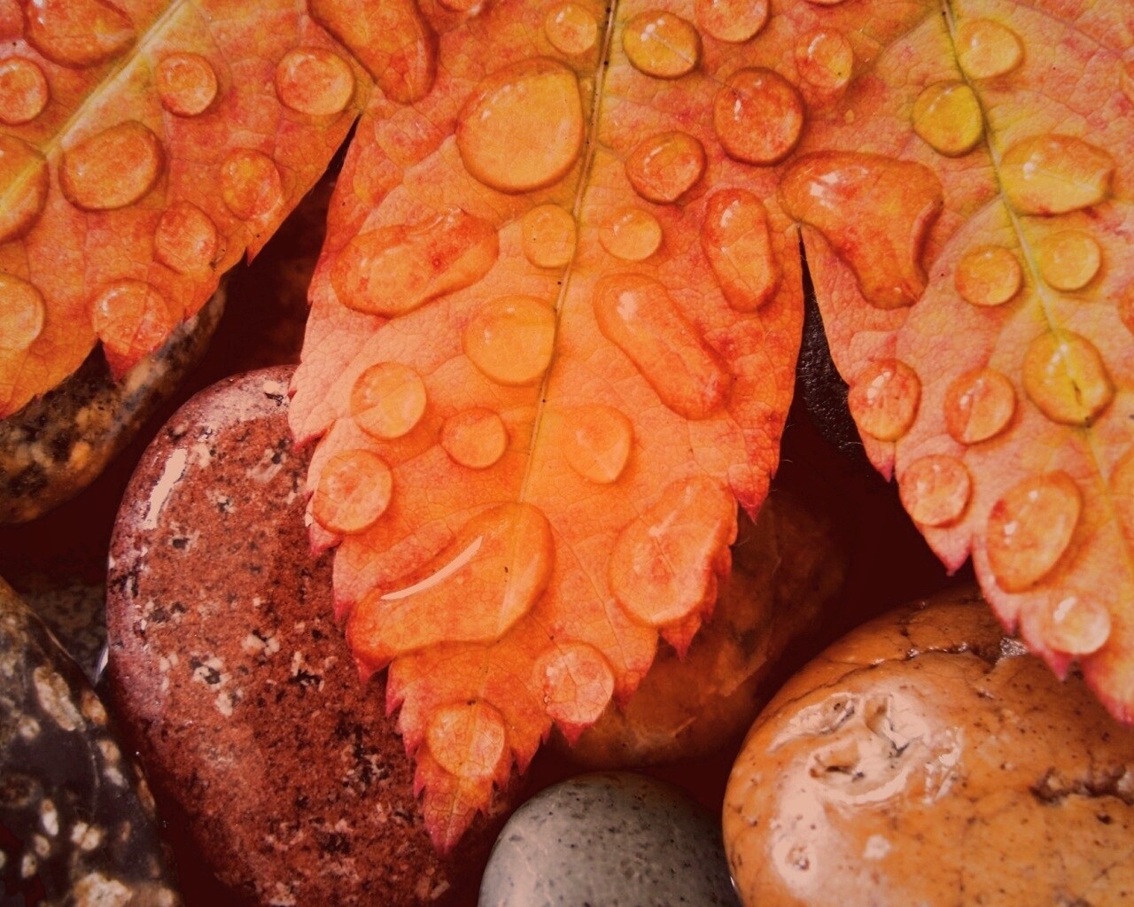 Обои для рабочего стола «Мокрые листья на камнях» 1280х1024 с фильтром toaster (оригинал 2000х1333)