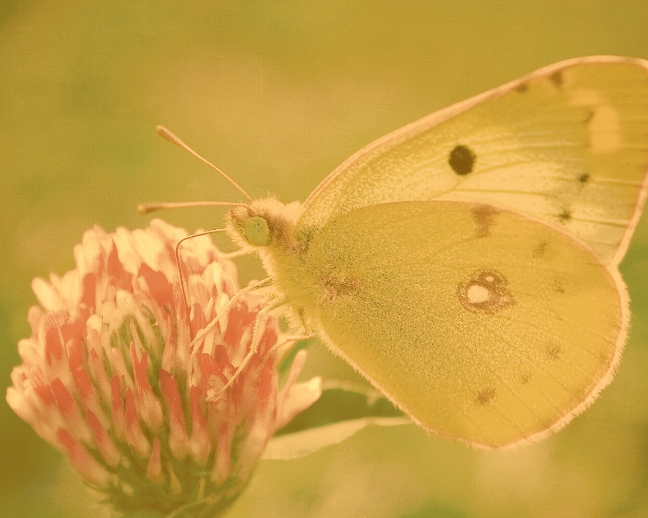 Обои для рабочего стола «Бабочка на клевере» 1280х1024 с фильтром kelvin (оригинал 1920х1200)