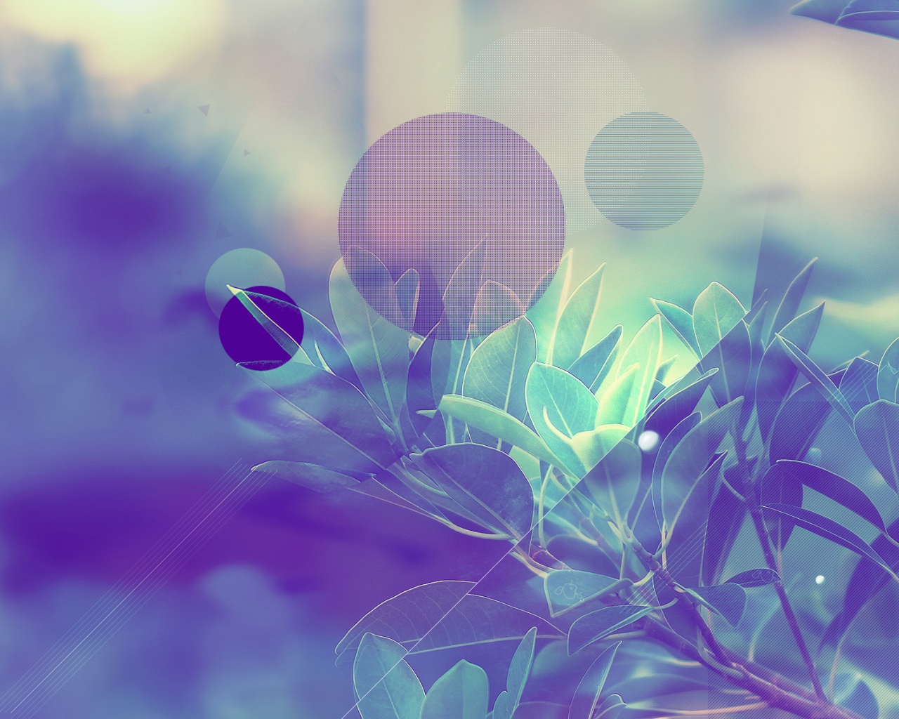 Обои для рабочего стола «Синий фильтр с кргуами на фото листьев» 1280х1024 (оригинал 1920х1200)