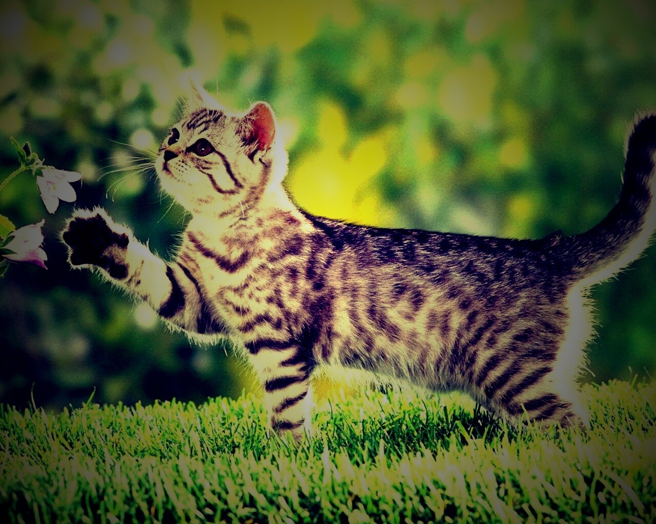 «Котенок играет с цветами»