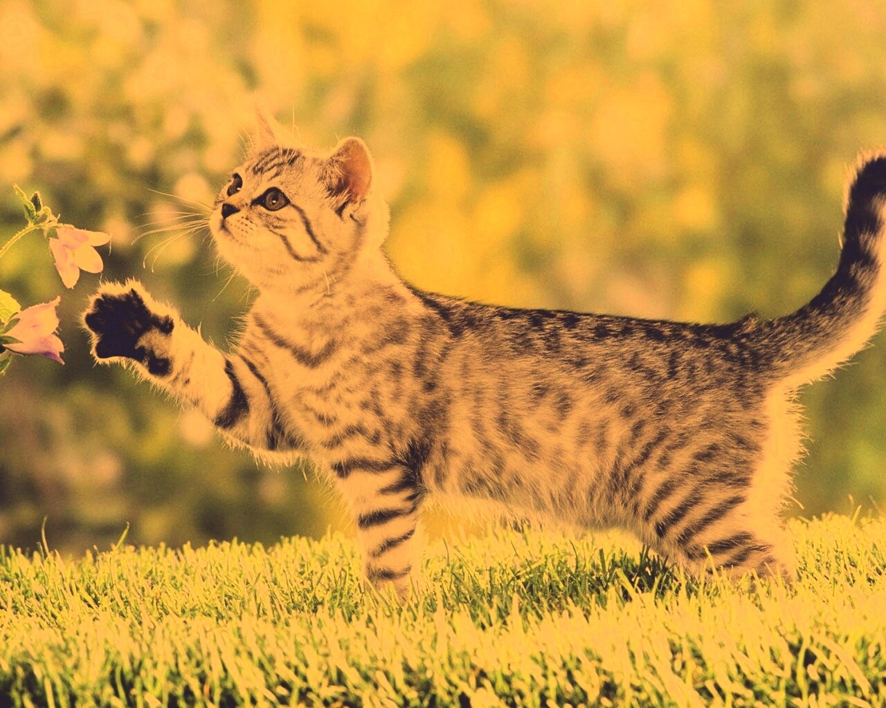 «Котенок играет с цветами»