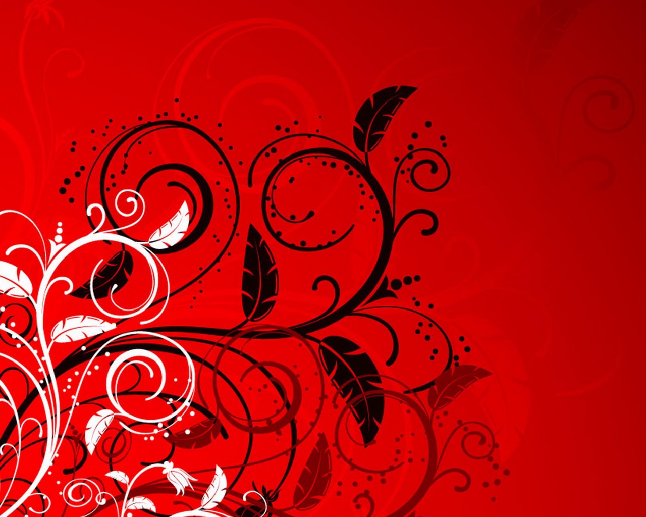 «Черно-белые листики на красном фоне»