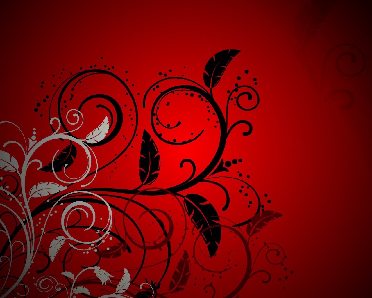 «Черно-белые листики на красном фоне»