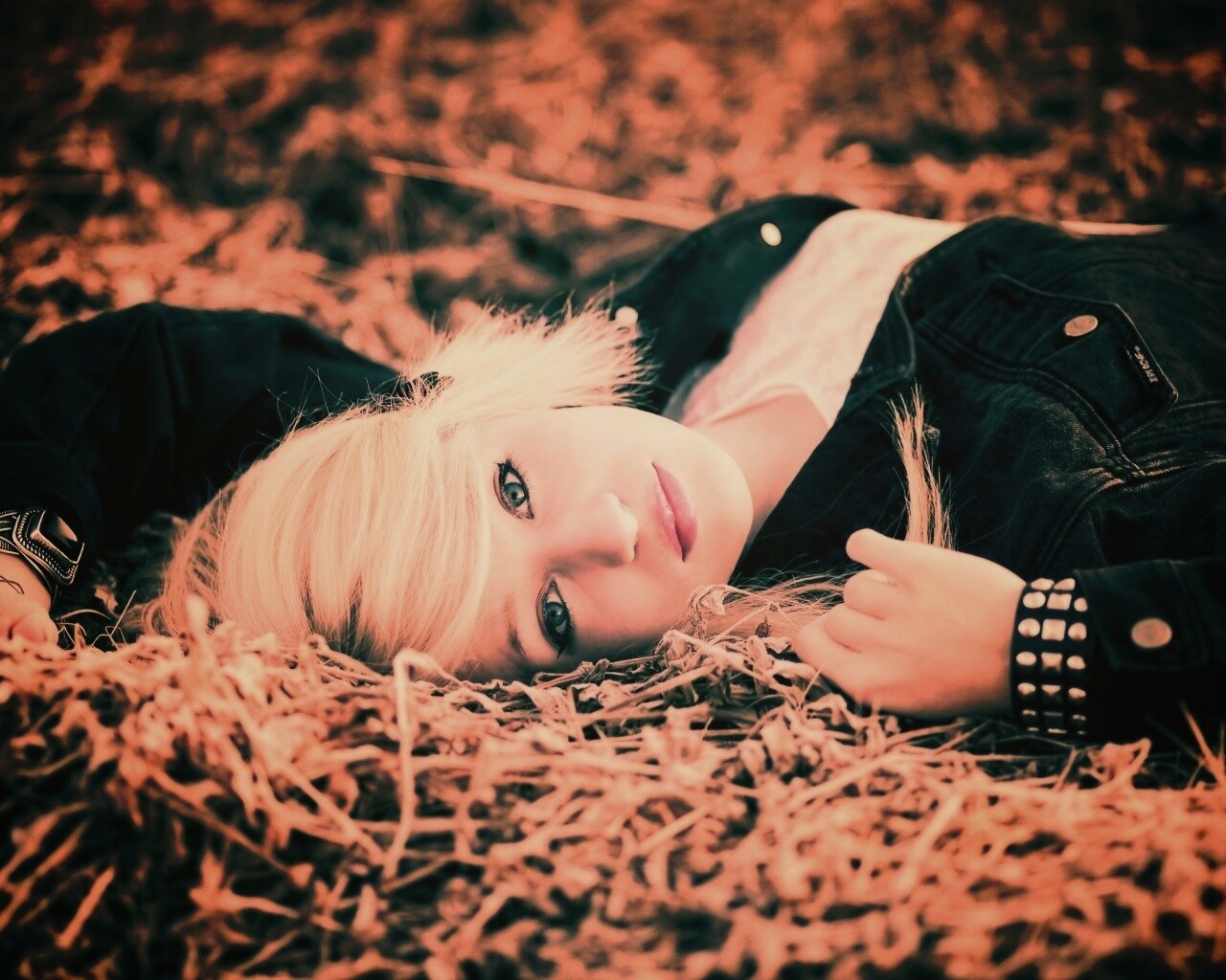 «Блондинка лежащая на траве»
