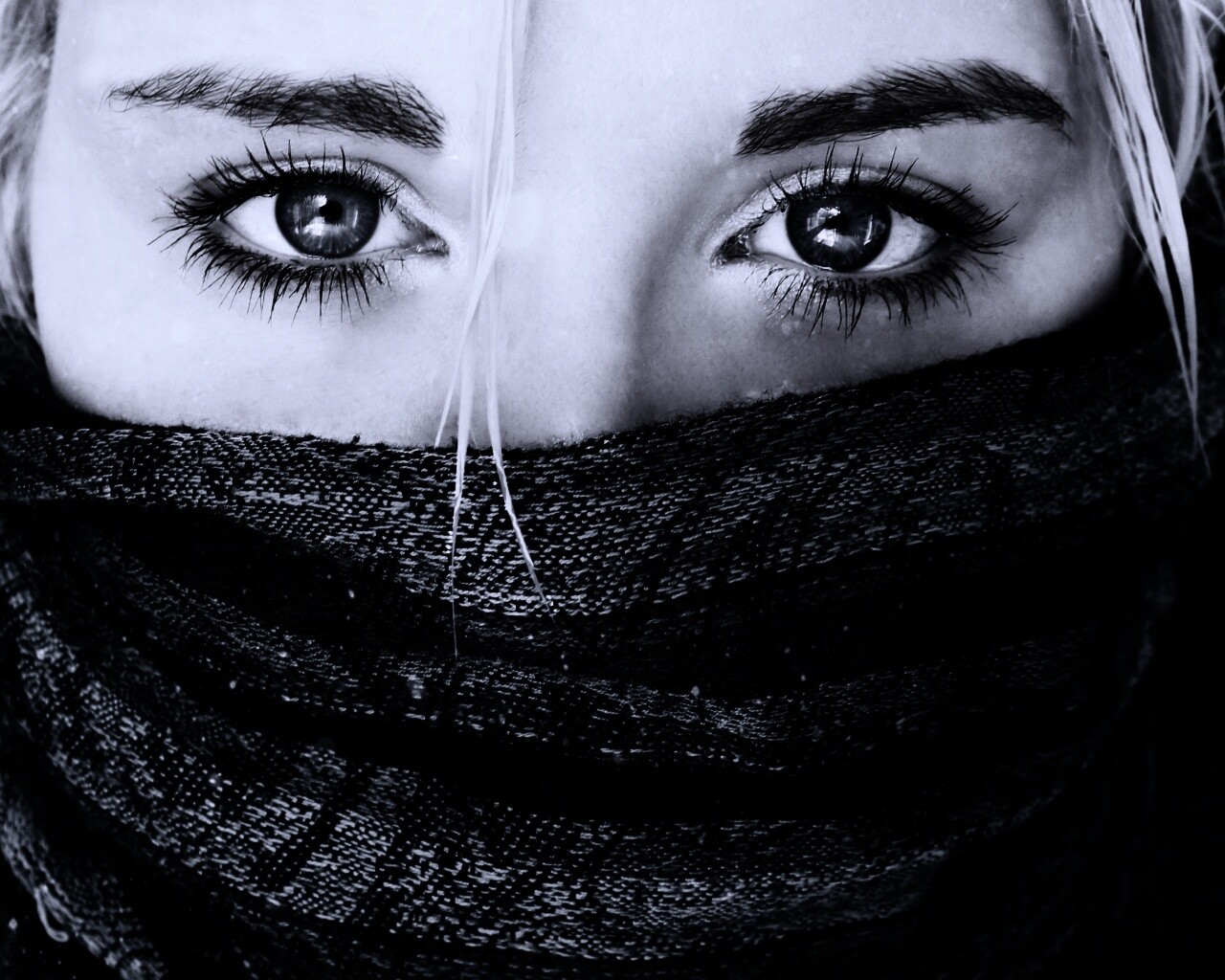 «Блондинка с шарфом на лице»