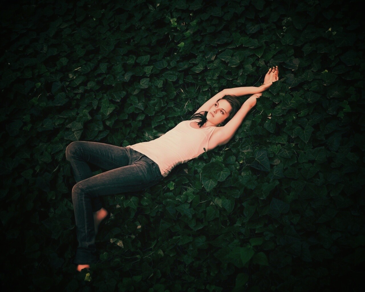 «Кристен Стюарт на ковре из листьев»