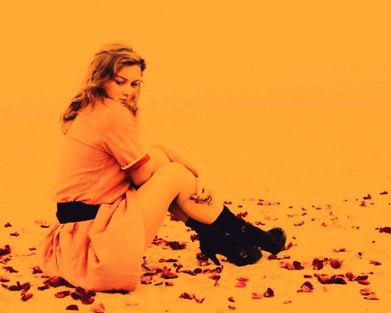 «Девушка среди лепестков на пляже»