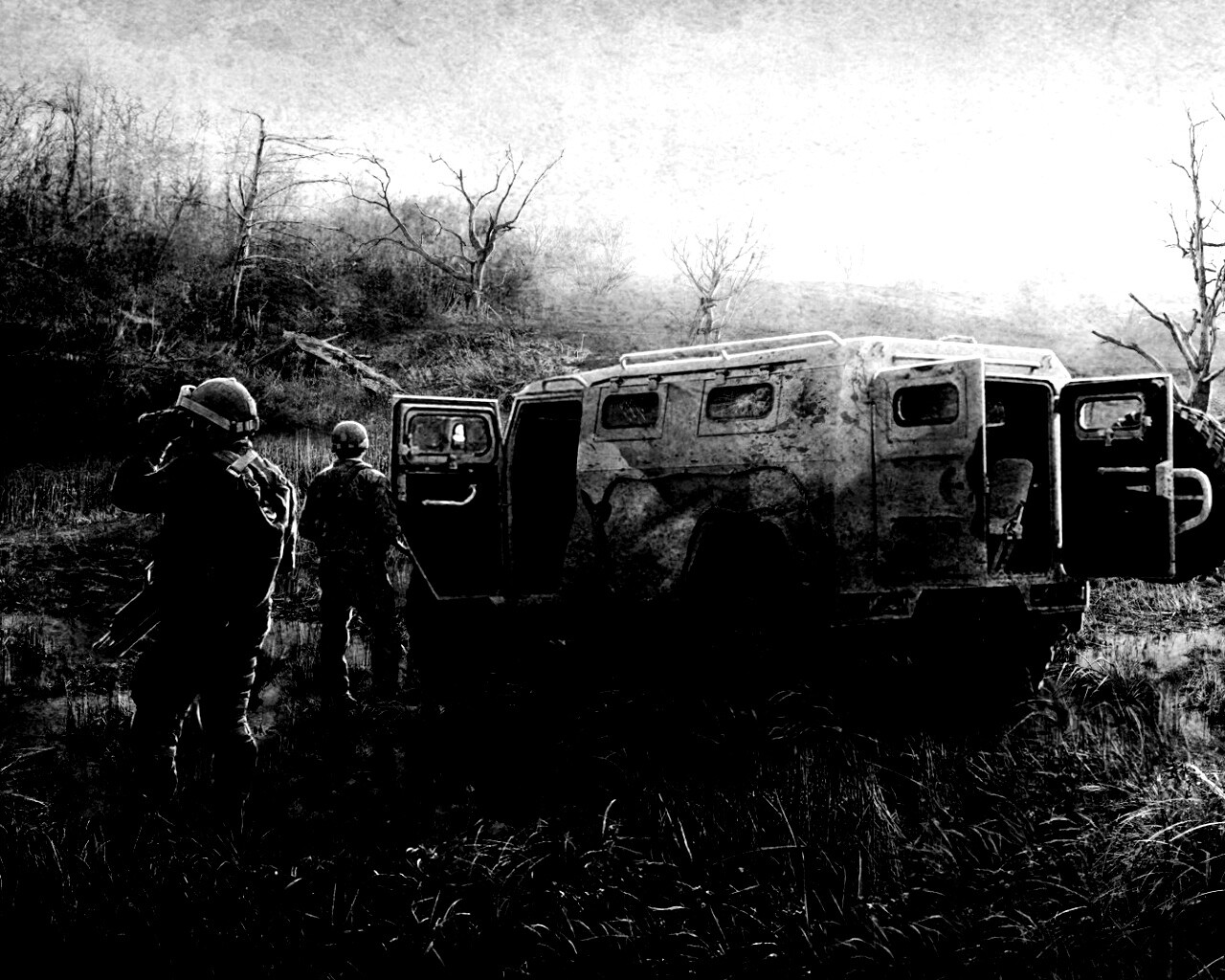 «Солдаты из сталкера на болоте»