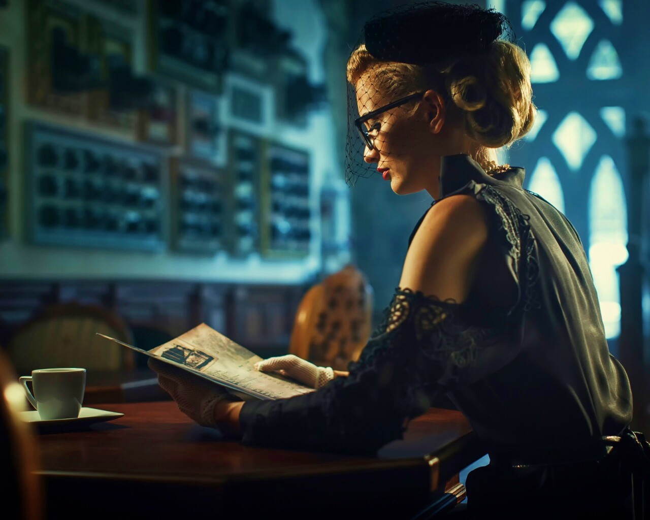 «Витажная девушка в кафе»
