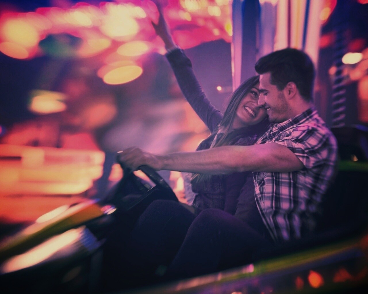 «Счастливая пара на аттракционах»