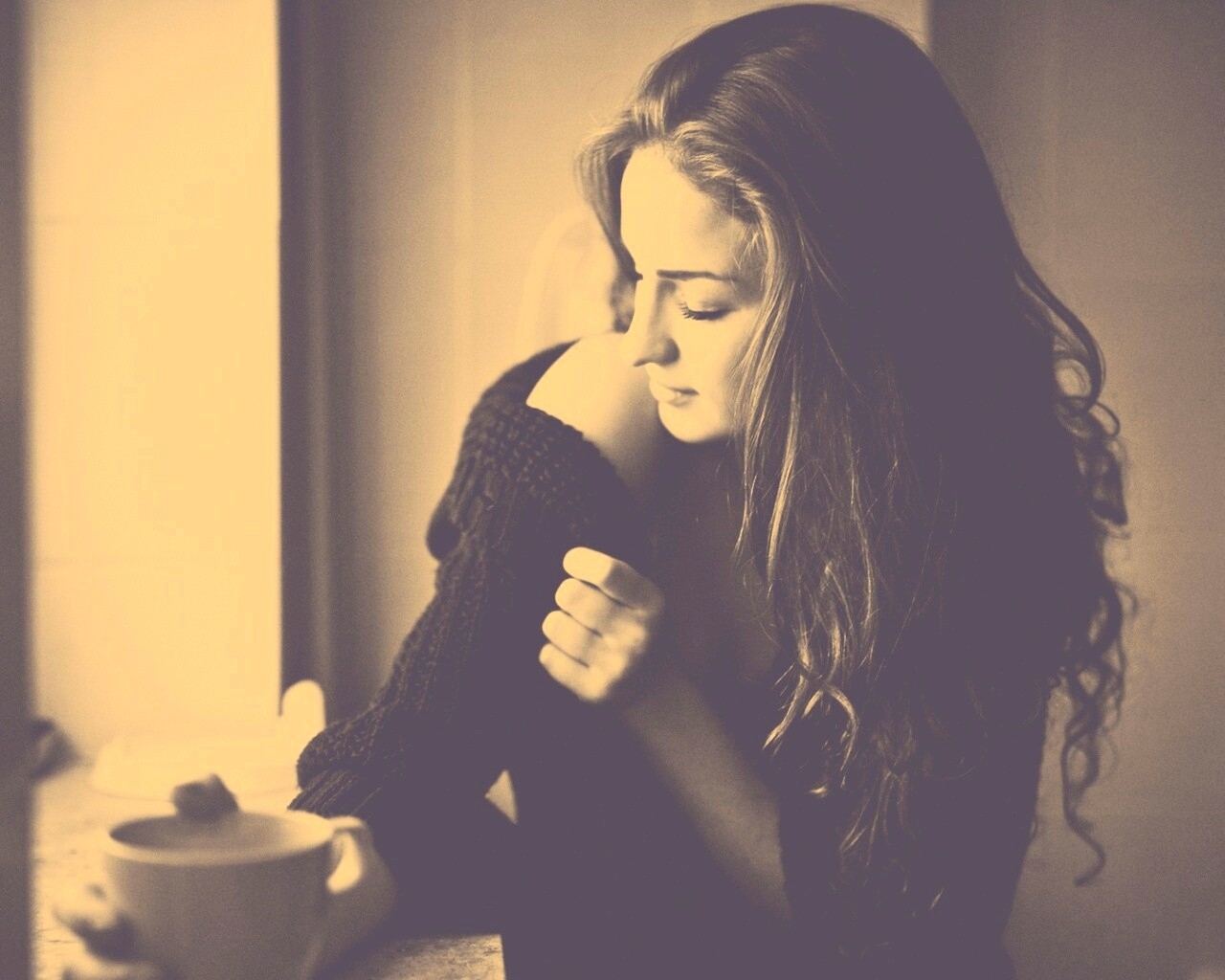 «Обнаженное плечо и чашка кофе»