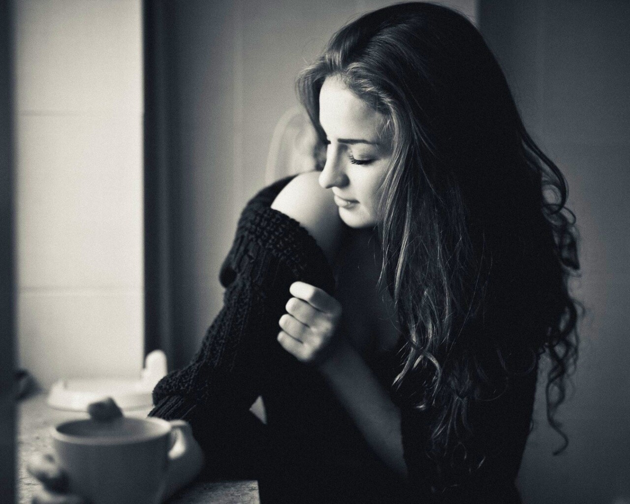 «Обнаженное плечо и чашка кофе»