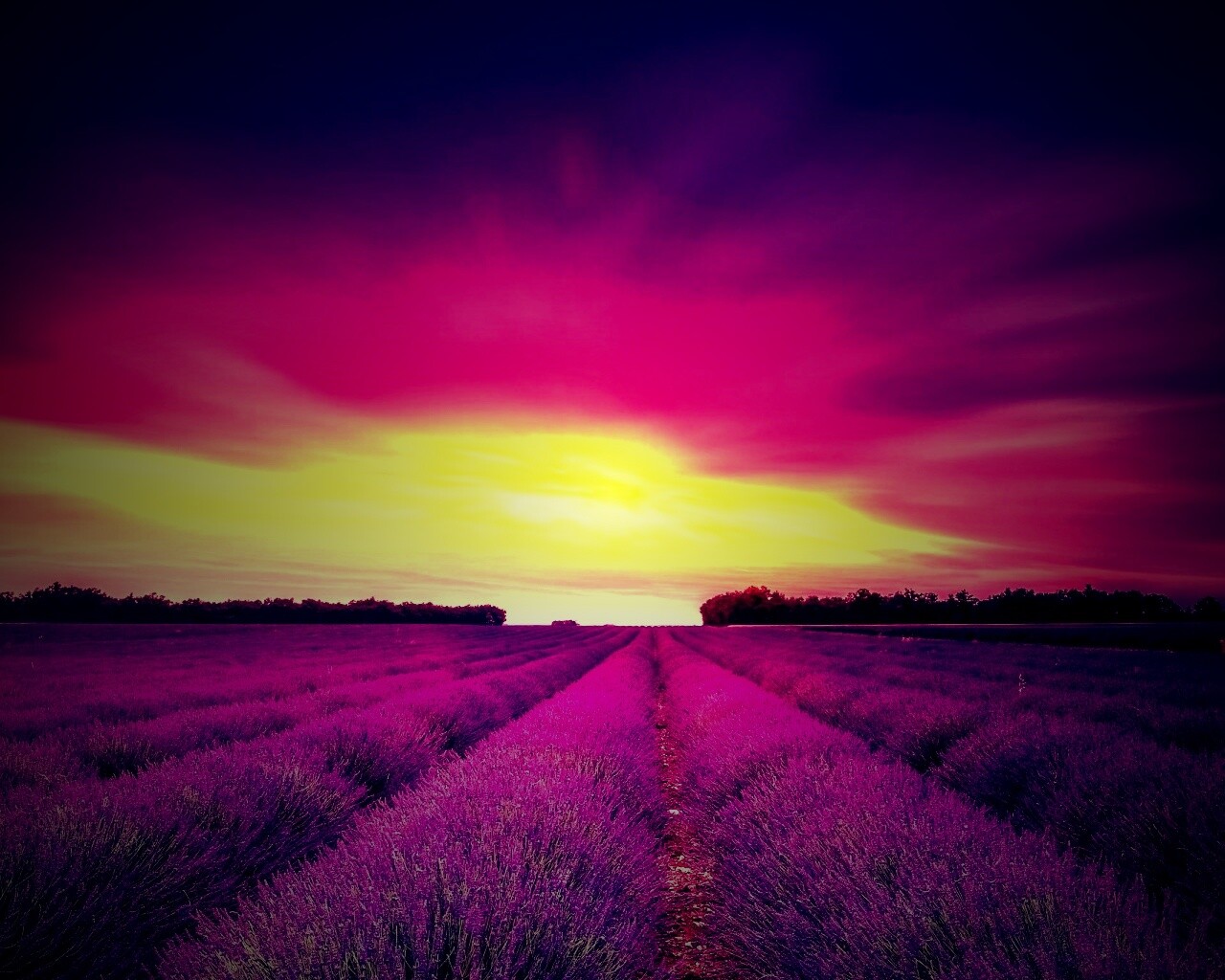 «Поле фиолетовых цветов на закате»