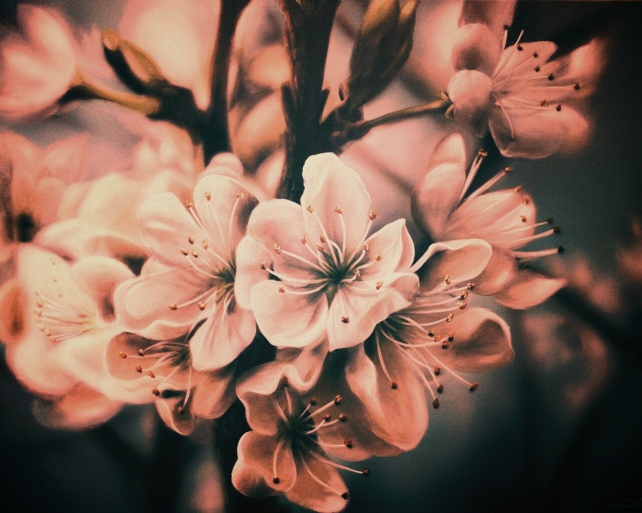 Обои для рабочего стола «Яблоня в цвету картина» 1280х1024 с фильтром earlybird (оригинал 3248х2335)
