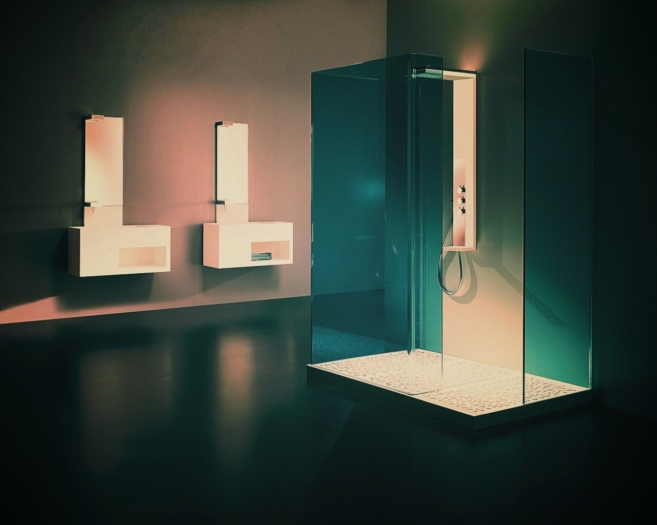 Обои для рабочего стола «Ванная комната в стиле hi tech» 1280х1024 с фильтром earlybird (оригинал 1920х1200)