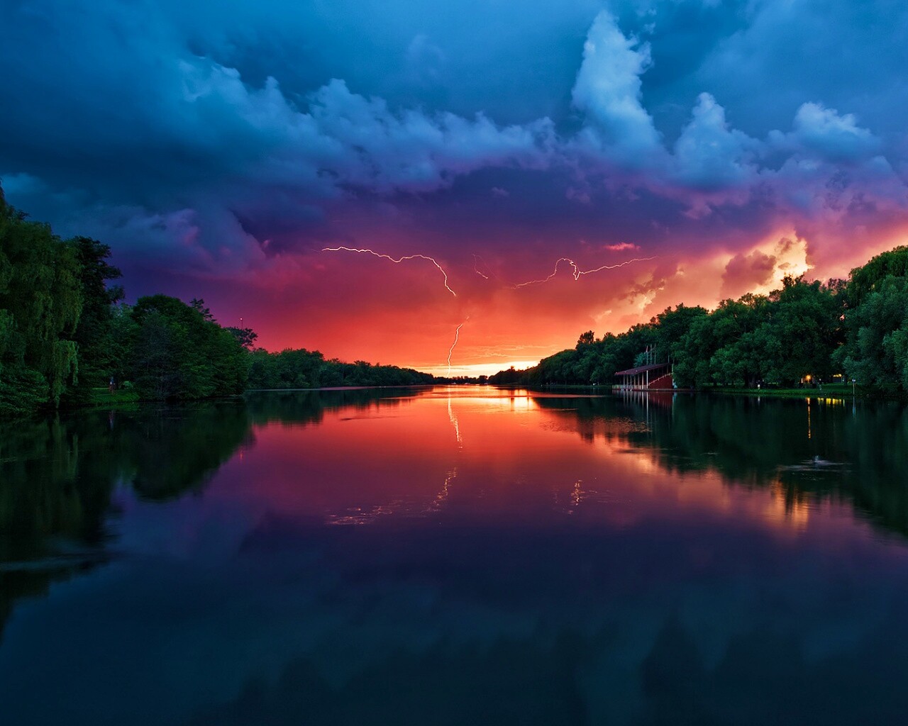 «Молнии на фоне заката, стандартные обои mac»