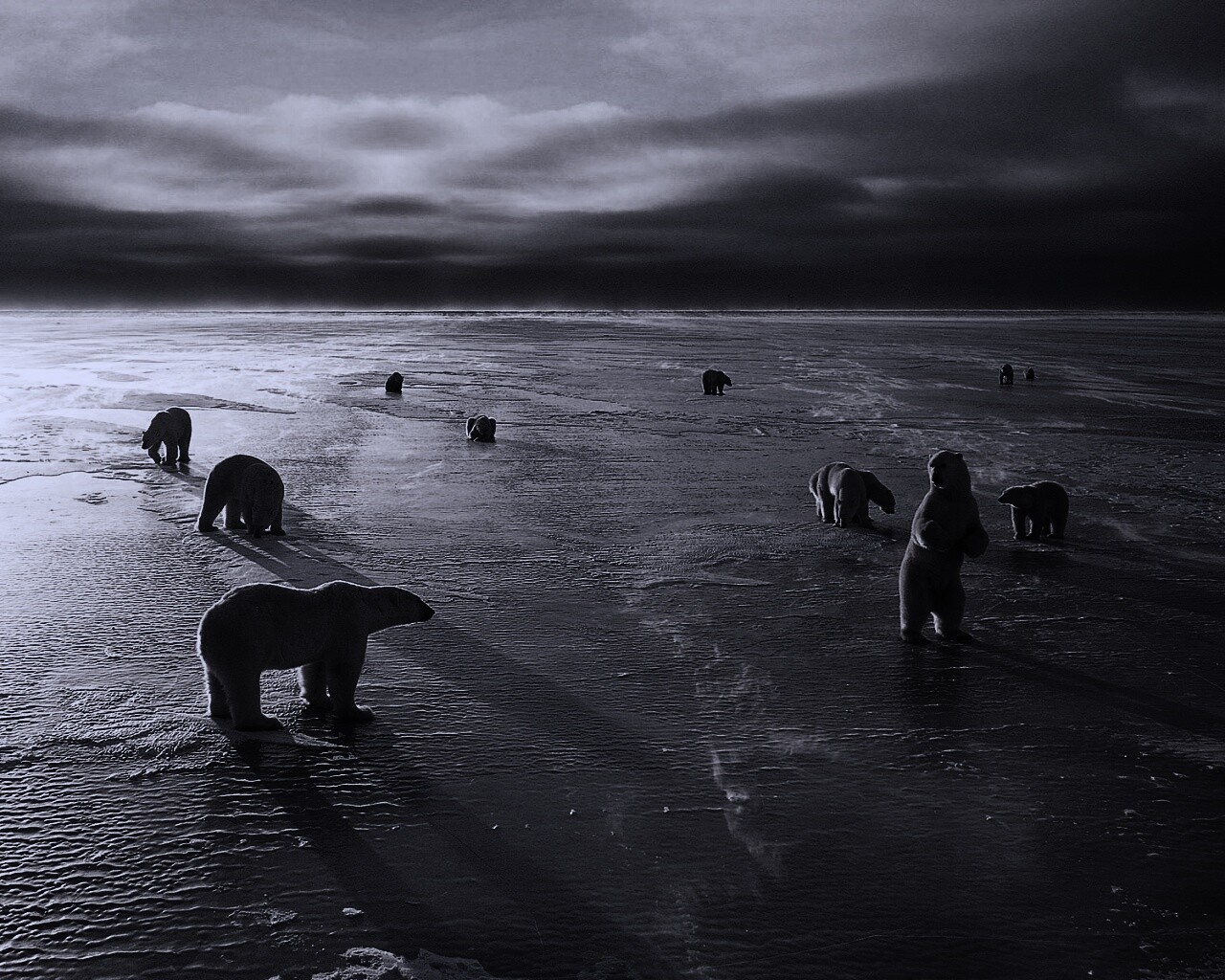 Обои для рабочего стола «Полярные медведи» 1280х1024 с фильтром gotham (оригинал 1920х1200)