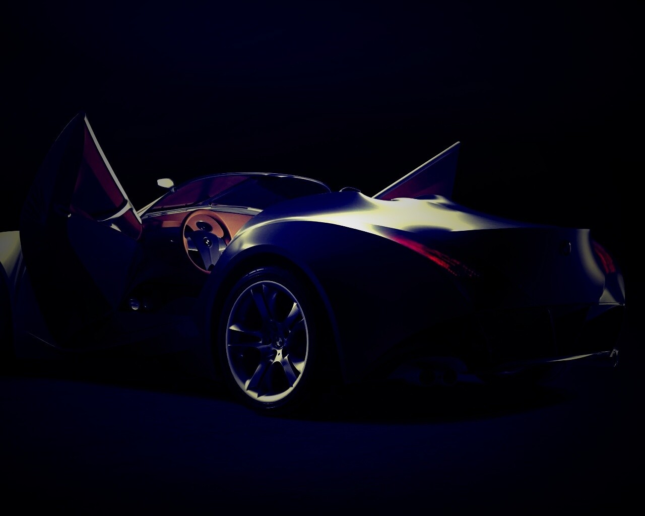Обои для рабочего стола «Автомобиль с распахнутыми дверцами» 1280х1024 с фильтром lomo (оригинал 1920х1200)