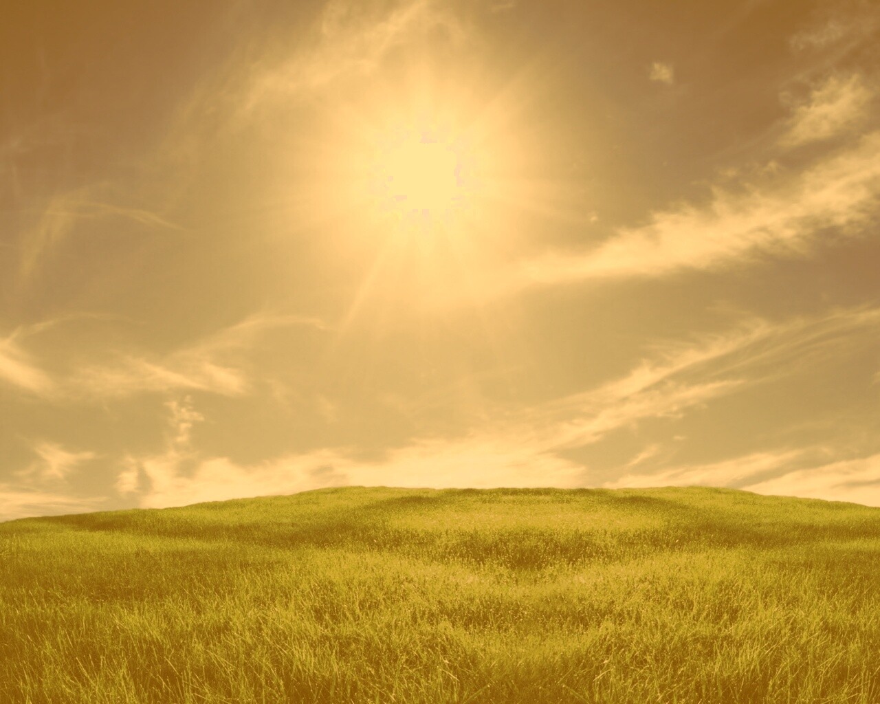 Обои для рабочего стола «Солнце над холмом» 1280х1024 с фильтром kelvin (оригинал 2560х1600)