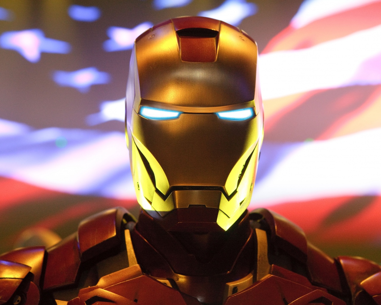 Обои для рабочего стола «Железный человек на фоне американского флага» 1280х1024 (оригинал 3999х2666)