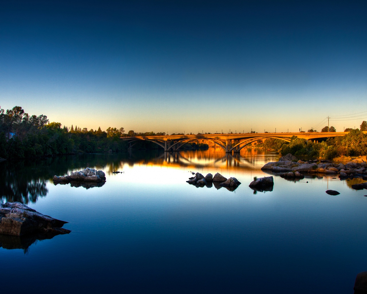 Обои для рабочего стола «Мост через живописную реку» 1280х1024 (оригинал 1920х1080)