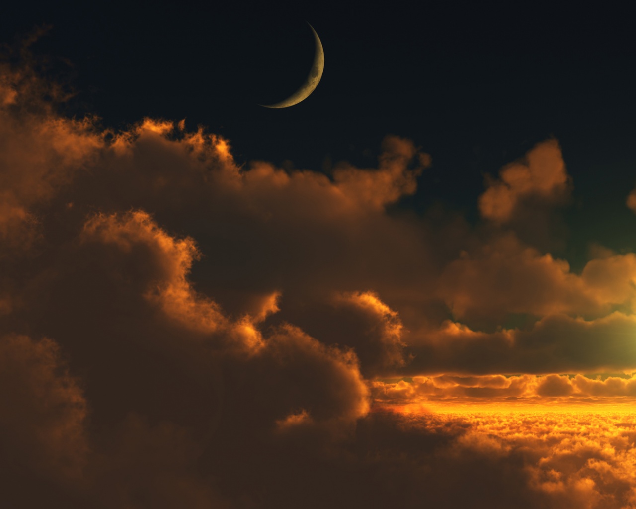 «Закат и месяц над облаками»
