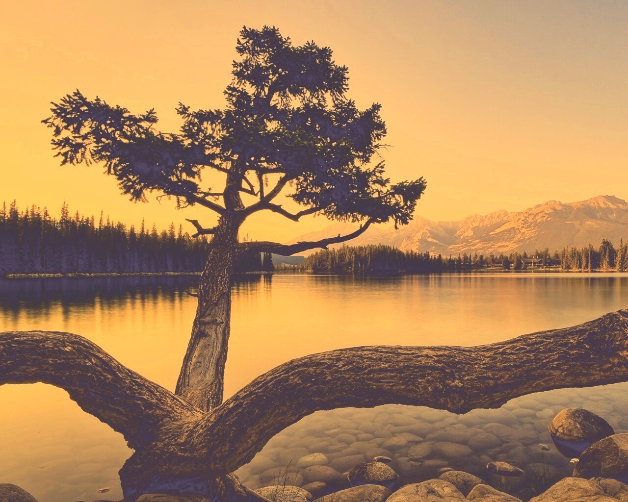 «Дерево у горного озера»