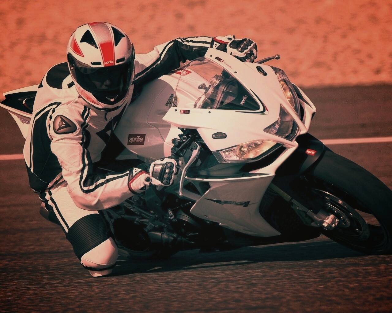 «Байкер в белой экиперовкена Априлия РСВ4»