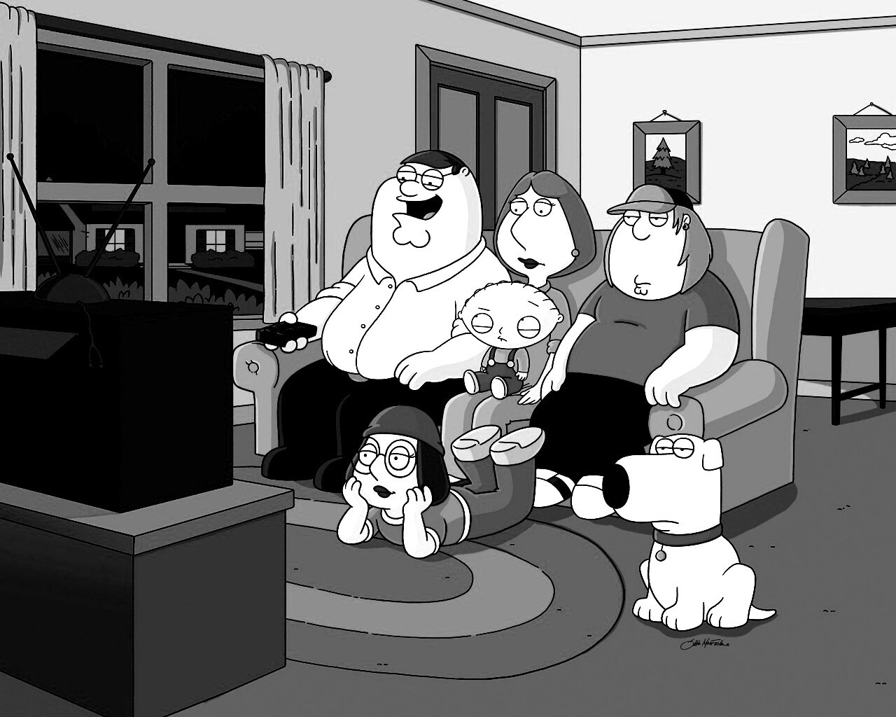 «Гриффины всей семьей перед телевизором»