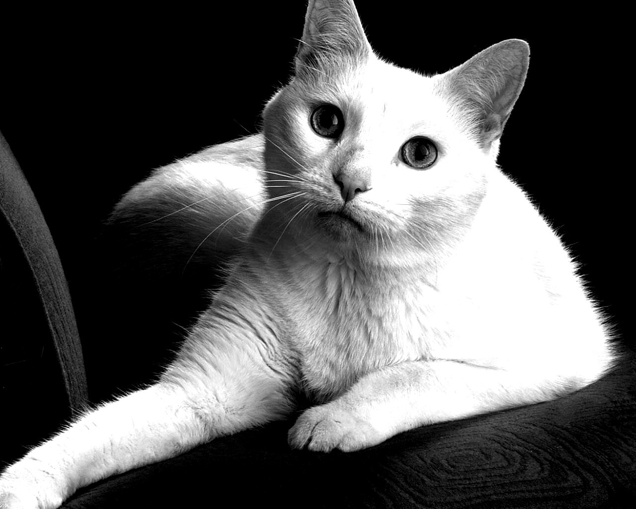 Обои для рабочего стола «Белой кот на красном диване» 1280х1024 с фильтром inkwell (оригинал 1680х1050)