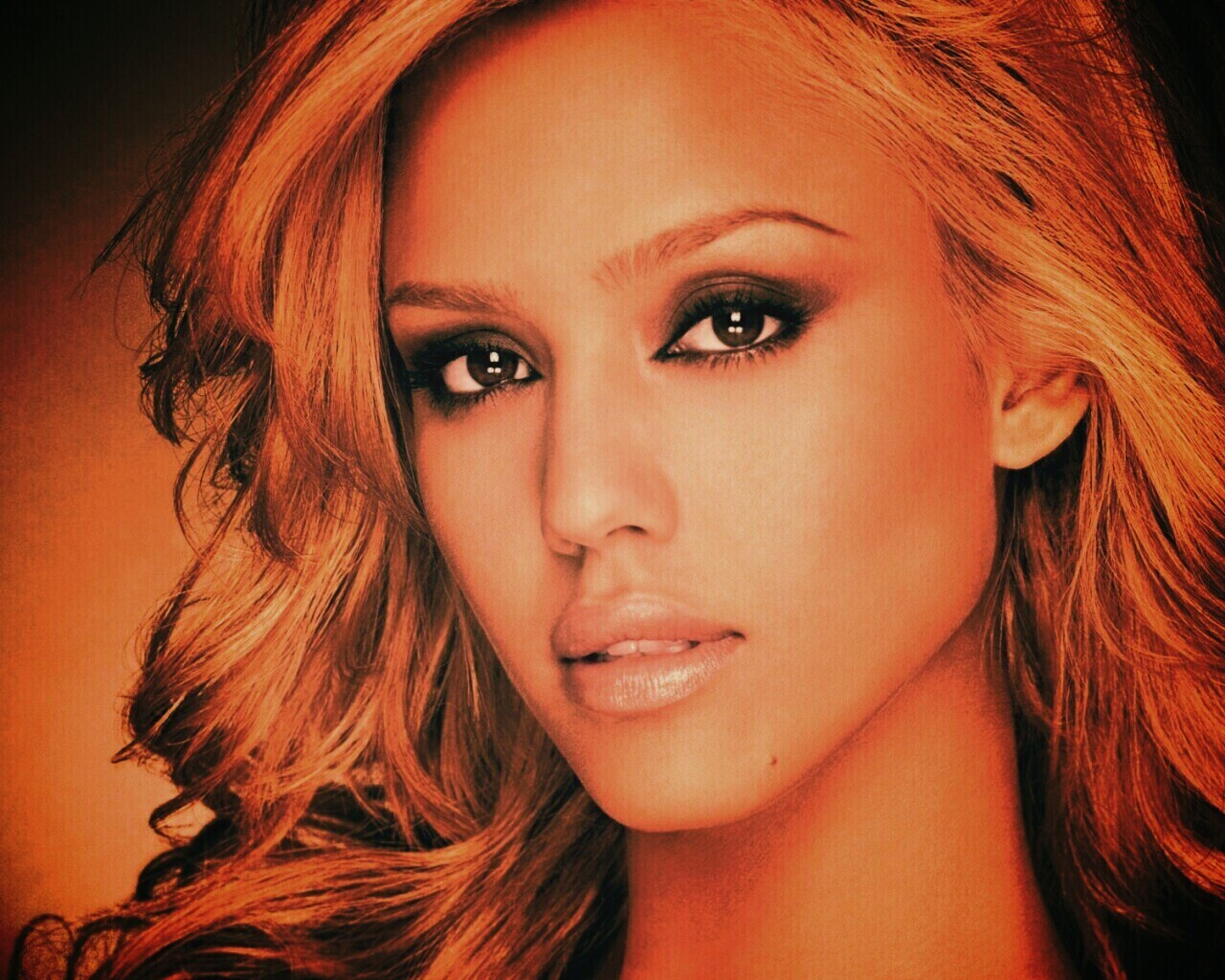 Обои для рабочего стола «Джессика Альба» 1280х1024 с фильтром earlybird (оригинал 1920х1080)