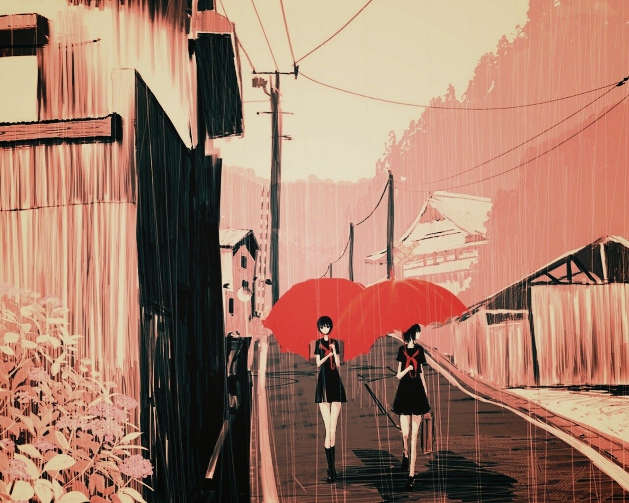 «Девушки с красными зонтами»