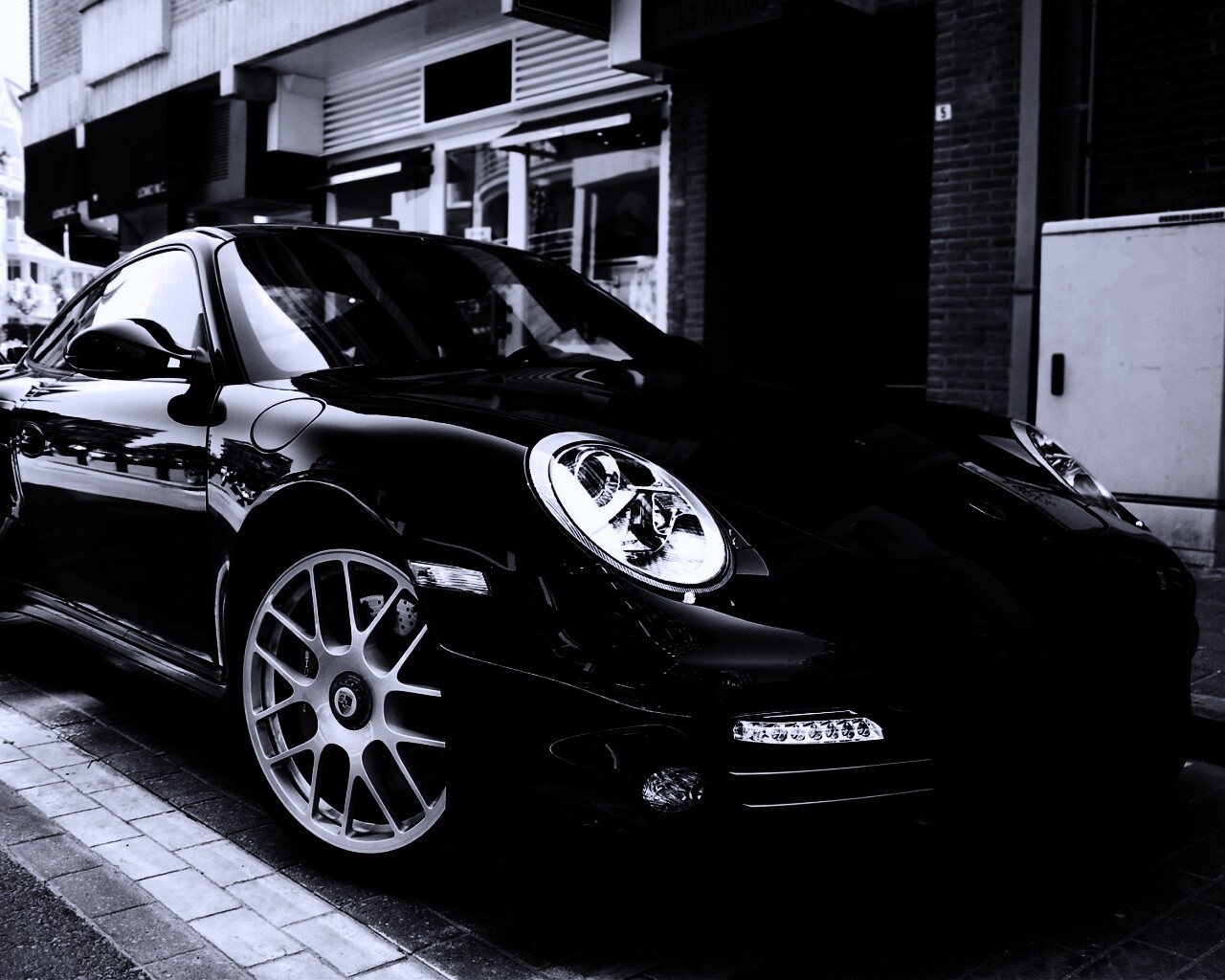 Обои для рабочего стола «Чёрно-белое фото Porsche» 1280х1024 с фильтром gotham (оригинал 1920х1200)