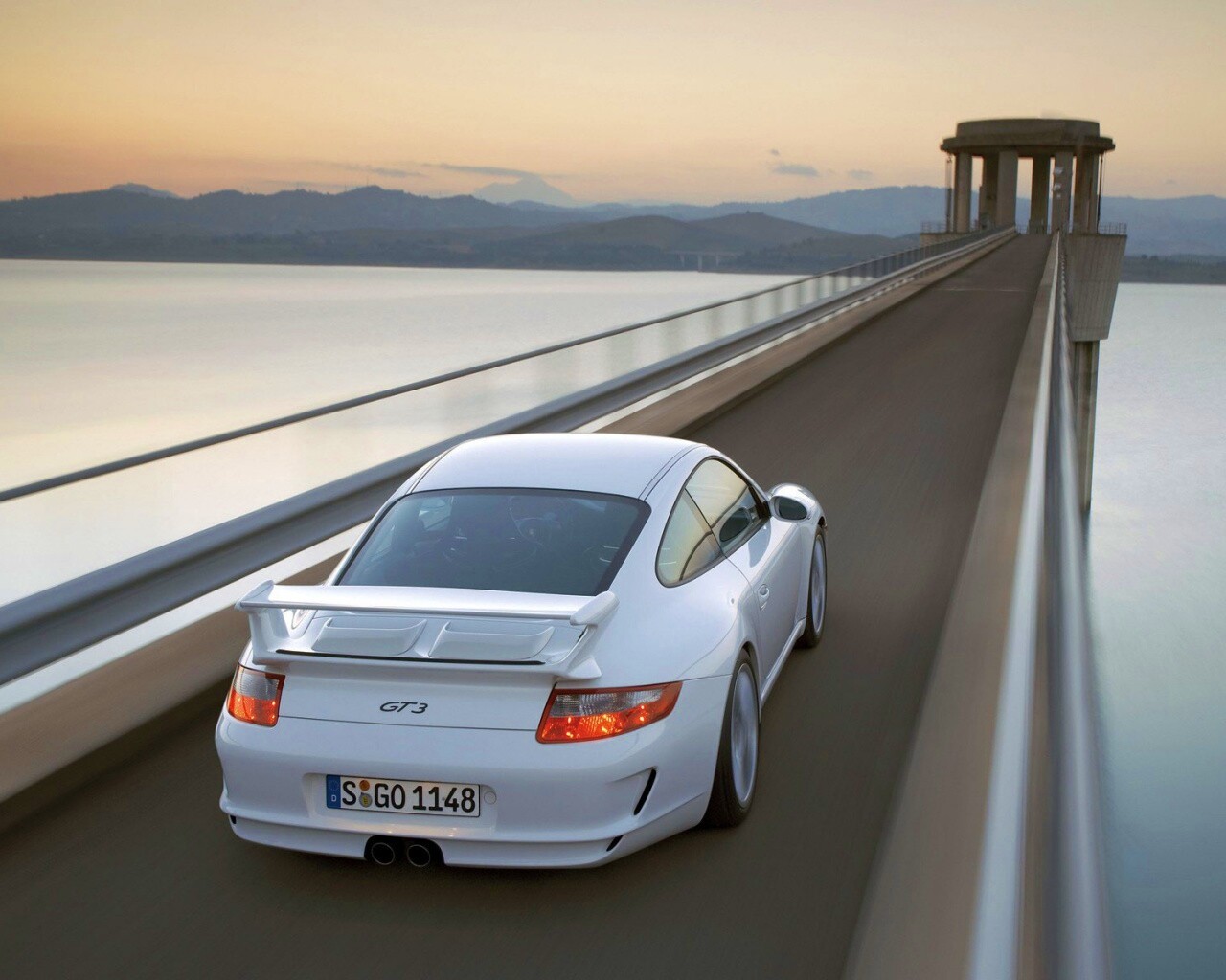 Обои для рабочего стола «Порше на дамбе» 1280х1024 с фильтром vibrance (оригинал 1920х1200)