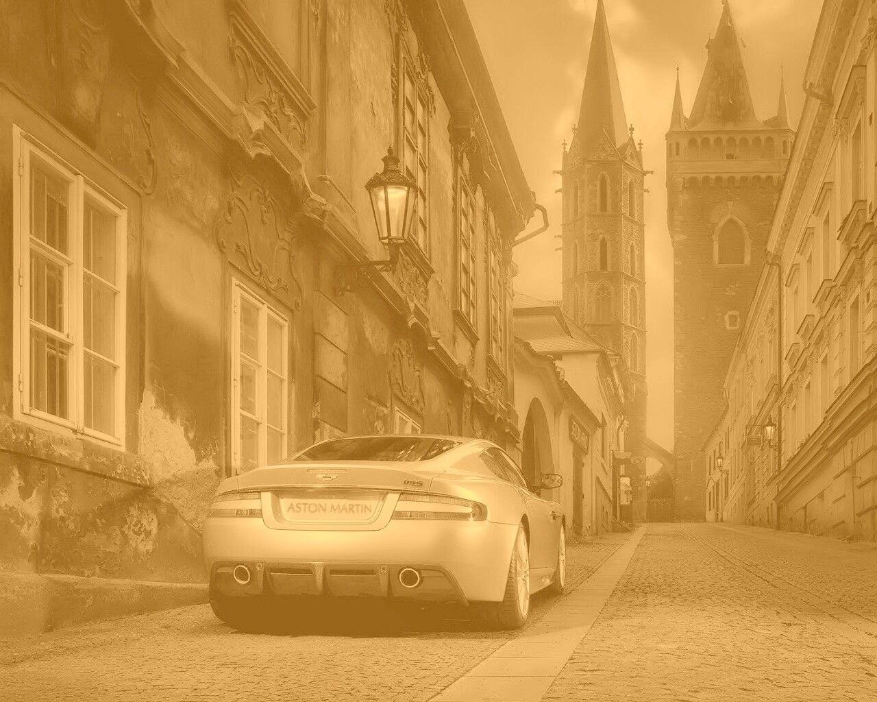 «Aston Martin в старинном городе»
