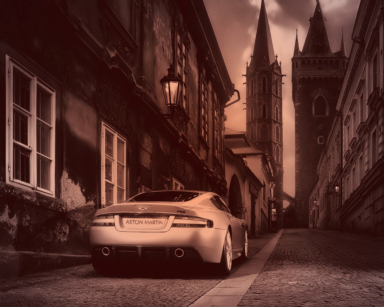 «Aston Martin в старинном городе»
