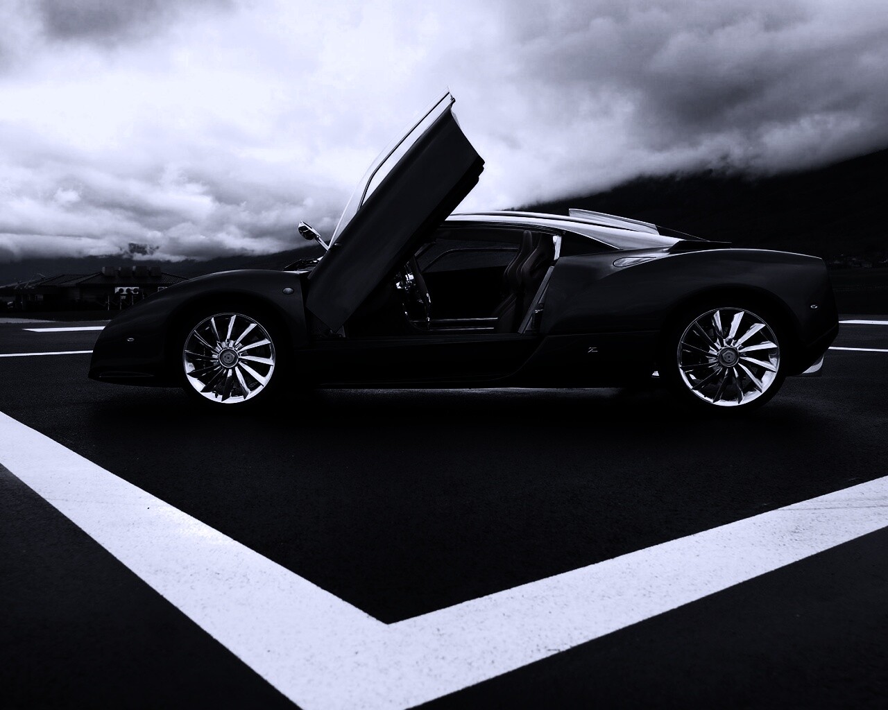 Обои для рабочего стола «Spyker C12 на аэродроме» 1280х1024 с фильтром gotham (оригинал 1920х1200)