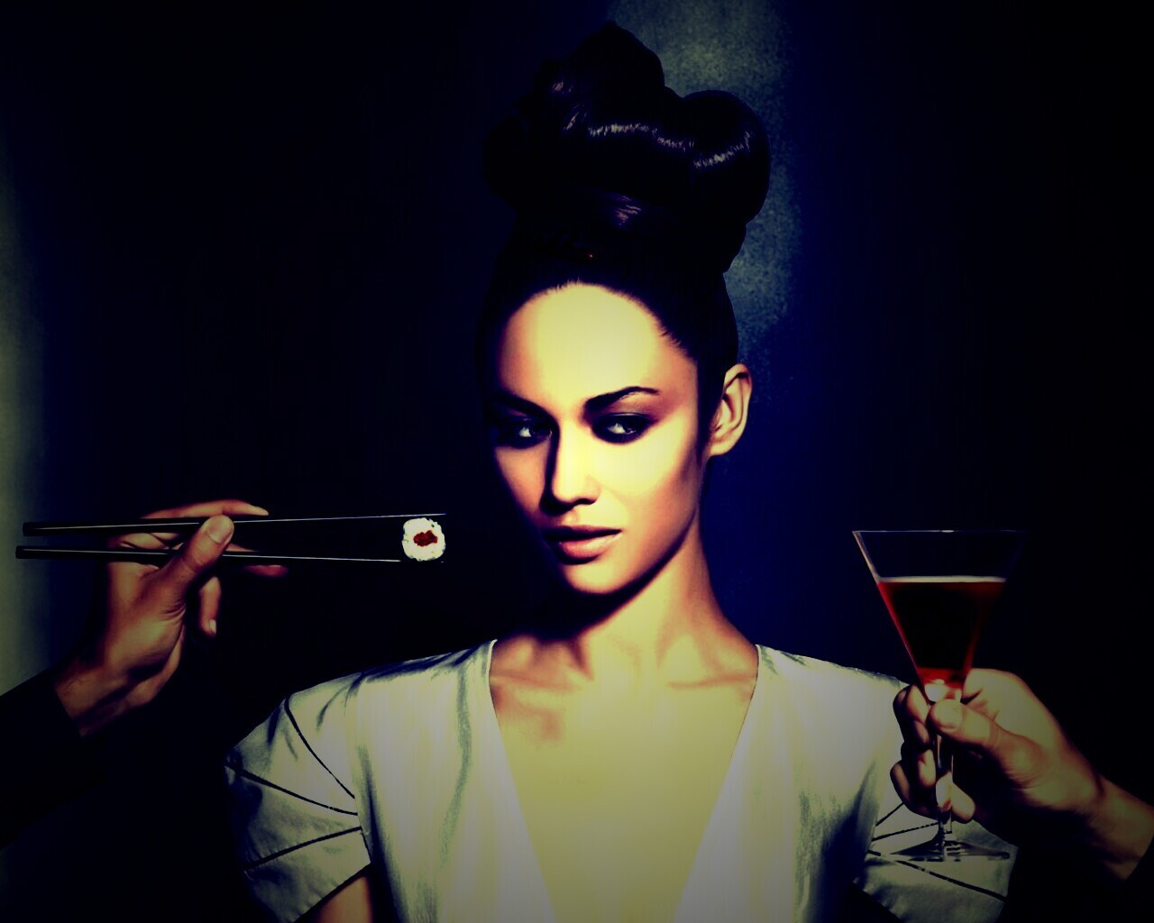 Обои для рабочего стола «Ольга Куриленко» 1280х1024 с фильтром lomo (оригинал 1920х1080)