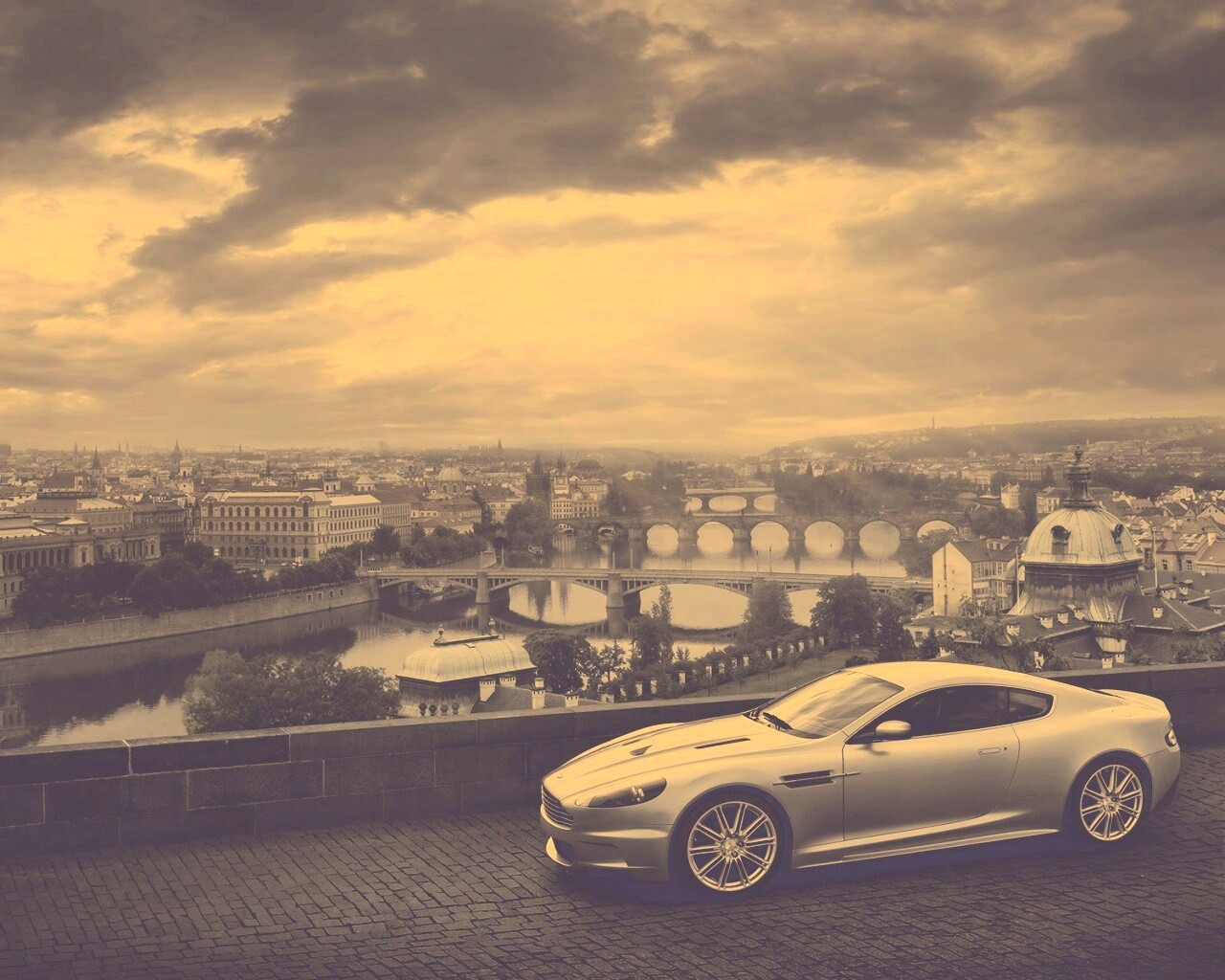 Обои для рабочего стола «Aston Martin в городе» 1280х1024 с фильтром nashville (оригинал 1920х1200)