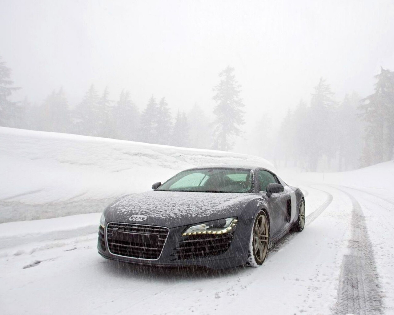 Обои для рабочего стола «Audi R8 зимой» 1280х1024 с фильтром vibrance (оригинал 1600х1200)