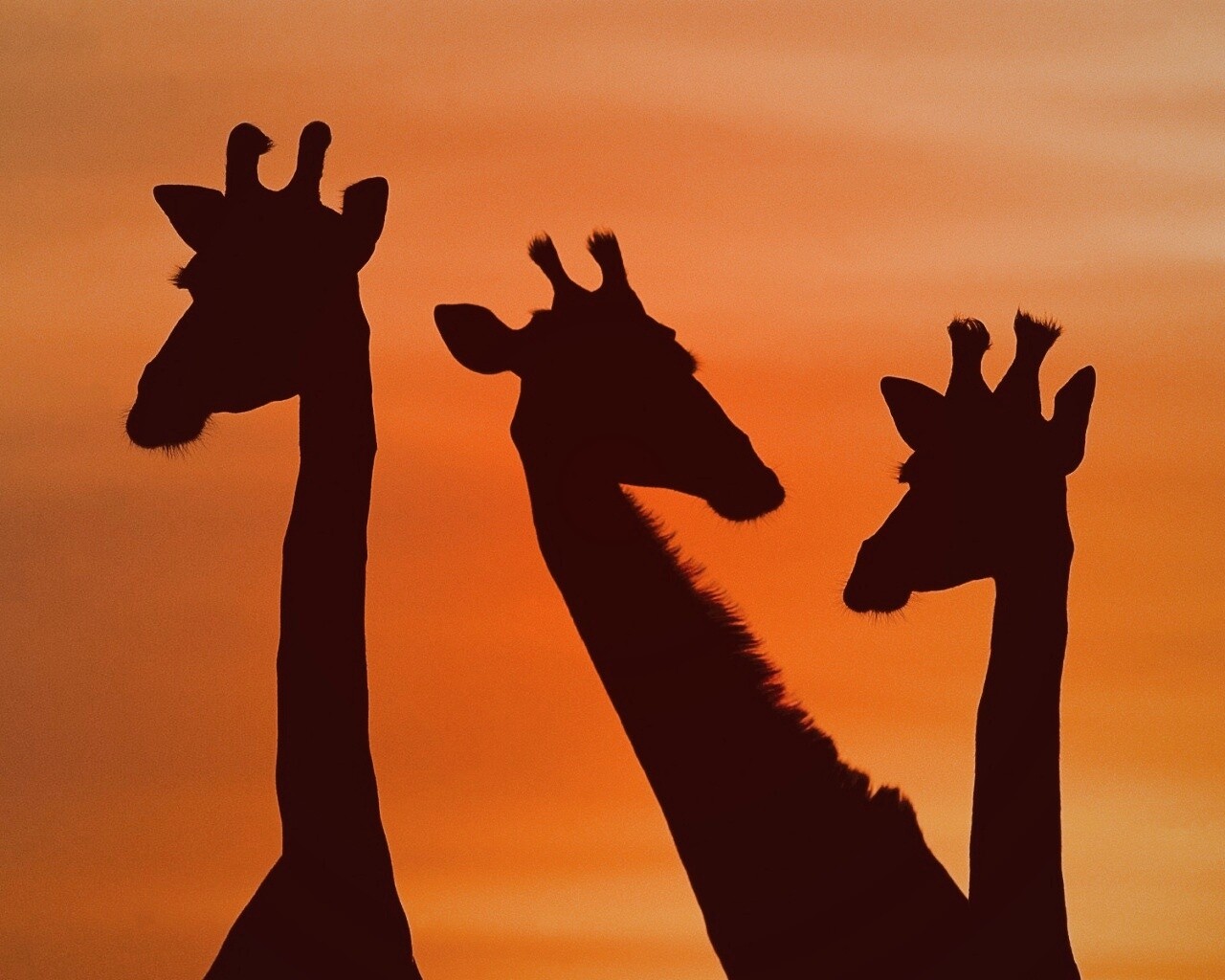 «Три силуэта жирафов на фоне неба»