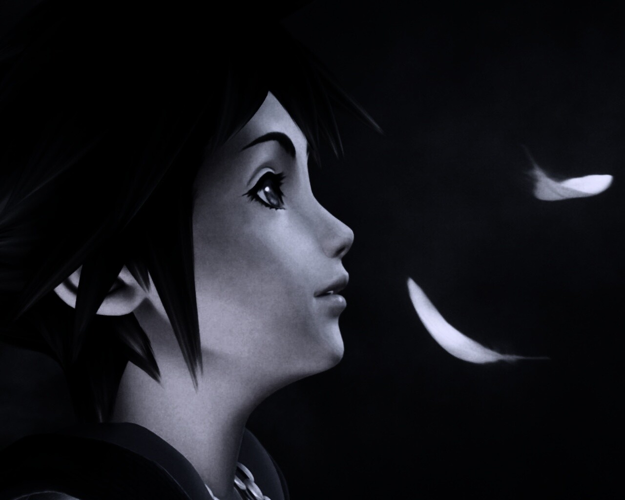 «Анимешный парень и белые перья»